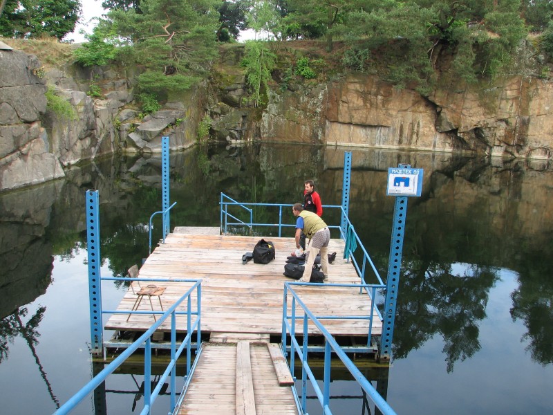 Lom je majetkem městského úřadu. Přístup k němuje „skoro“ z vesnice a pro snadný vstup do vody je zde umístěno molo. K celkovému „komfortu“ přispívá i budka chemického WC. Lom slouží jako koupaliště pro místní a díky tomu zde byla i špatná viditelnost (1 – 2 m). Pod vodou však není celkem nic moc k vidění. Lokalita je vhodná spíše pro venkovní cvičné ponory do malých hloubek 8 – 9 m, kde však je již úplná tma. Maximální hloubka námi naměřená byla kolem 9 metrů u mola. Zde je přibližně v 5ti metrech ponořený keson, který však není skoro vidět a tak se do něj akorát praštíte hlavou. K vidění je zde ale pár pěkných skupin leknínů a ryb. Teplota vody na hladině koncem července je přijatelných 19 °C, pod 5 metrů však docházelo k teplotnímu zlomu a voda měla kolem 10 °C a méně.